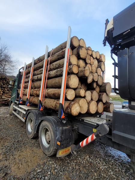 Dostępne są kłody o grubości od 25 cm oraz długościach 4 m, 5 m i 6 m.
